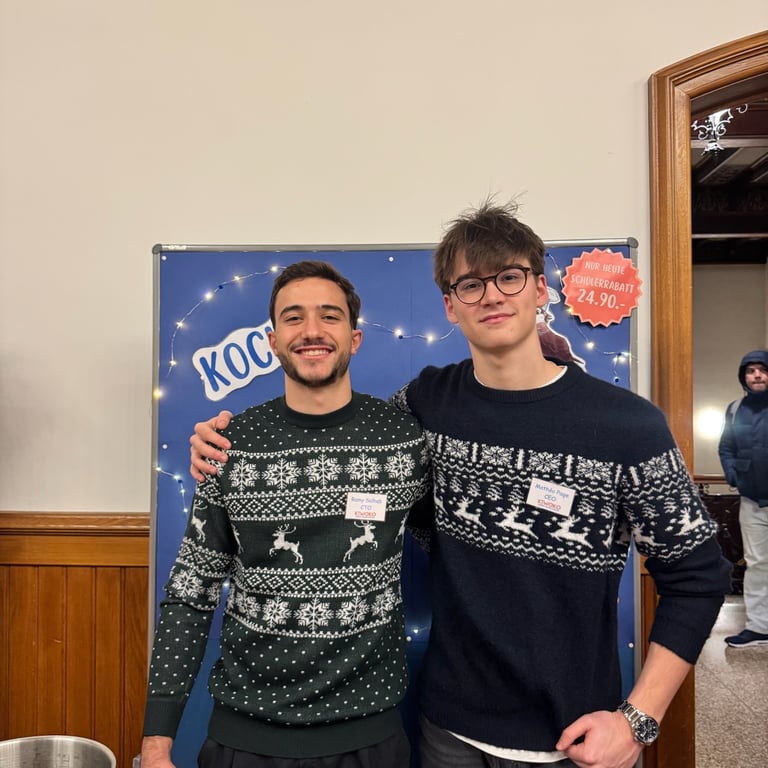 Am 12.12 fand die Hausmesse bei uns an der Alten Kanti Aarau statt. Einen ganzen Abend lang stellten wir, gemeinsam mit sieben anderen Miniunternehmen von der Kanti und der WMS, einen Stand aus. Passend zur Weihnachtszeit haben wir unsere Weihnachtspullis angezogen und verpackte Bücher angeboten. Wir konnten uns ausserdem einen Schulinternen Award für das beste Verkaufsverhalten sichern.